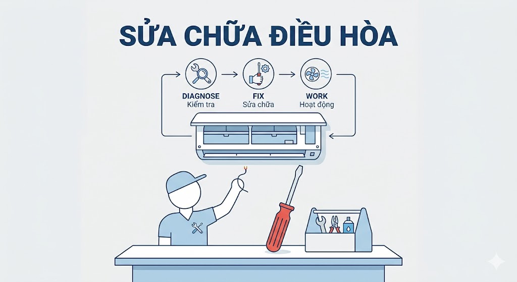 Dịch vụ sửa chữa điều hòa của chúng tôi được thực hiện bởi đội ngũ kỹ thuật viên giàu kinh nghiệm, có khả năng xử lý nhanh chóng mọi sự cố từ đơn giản đến phức tạp. Quy trình kiểm tra và sửa chữa được thực hiện bài bản, sử dụng thiết bị chuyên dụng giúp xác định chính xác nguyên nhân và đưa ra giải pháp tối ưu nhất, tiết kiệm chi phí cho khách hàng.